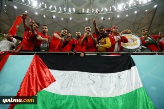 أسود الاطلس يحتفلون بالفوز رافعين العلم الفلسطيني