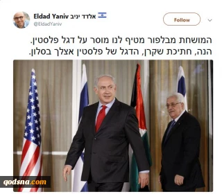 در همین حال الداد ینیف یکی دیگر از اعضای چپ گرای کنیست اسراییل با انتخاب عکسی از نتانیاهو که در کنار محمود عباس ایستاده بود و بین آنان پرچم فلسطین قرار داشت با کنایه به او در توئیتی نوشت: «فاسد خیابان بالفور برای ما درباره پرچم فلسطین نصیحت می کند. ای دروغگو پرچم فلسطین که کنار خودت در سالن برافراشته است. »