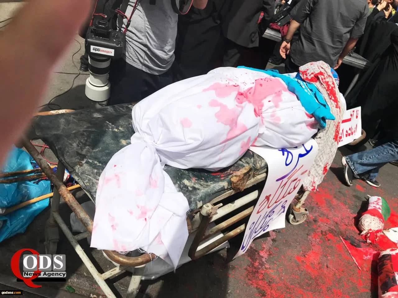 در این مراسم همزمان با حضور گسترده مردم، سرودهایی حماسی در حمایت از جبهه مقاومت پخش می شد و مردم نیز با در دست داشتن عکس شهدای مقاومت و سردادن شعارهای «مرگ بر آمریکا» و «مرگ بر اسرائیل» خشم و انزجار خود را از جنایات صهیونیستها و حامیان آنها اعلام می کردند.