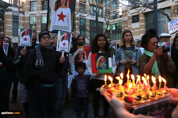 At the end of the rally, demonstrators held mini cakes and sang “Happy Birthday” to Tamimi in English, Arabic and Spanish.