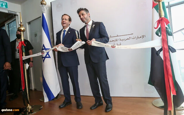 The inauguration ceremony on Wednesday was hosted by UAE’s Ambassador to Israel Mohammad al-Khaja, with the regime’s President Isaac Herzog in attendance.