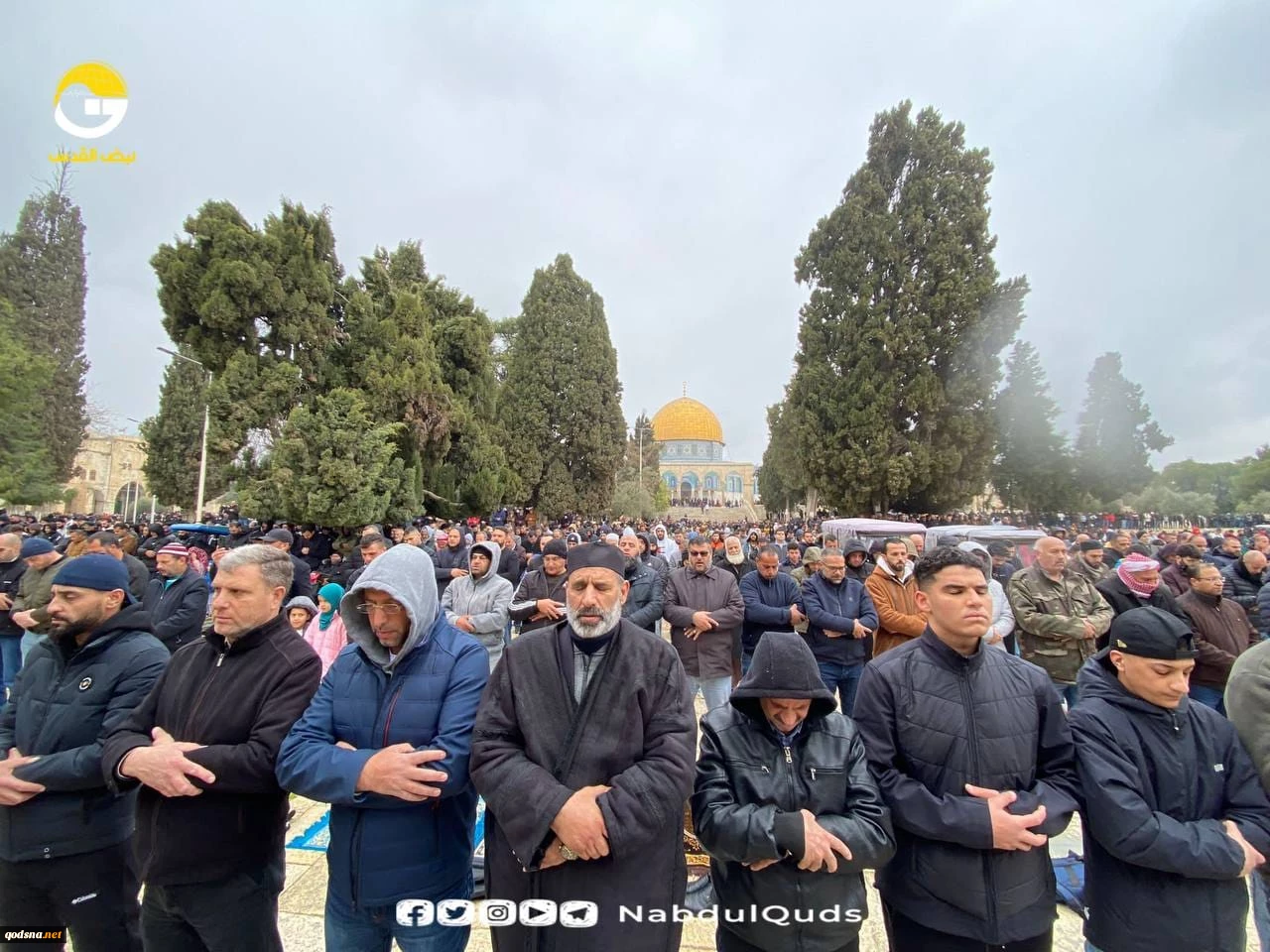 Palestinians perform Friday prayer at Al-Aqsa in Occupied al-Quds