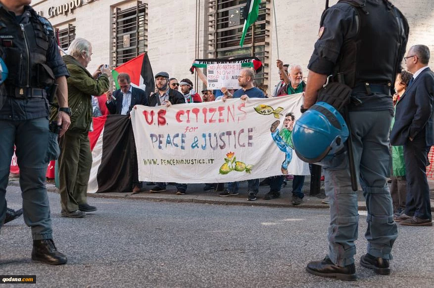 جمع حامیان فلسطین در مقابل سفارت آمریکا در رم
