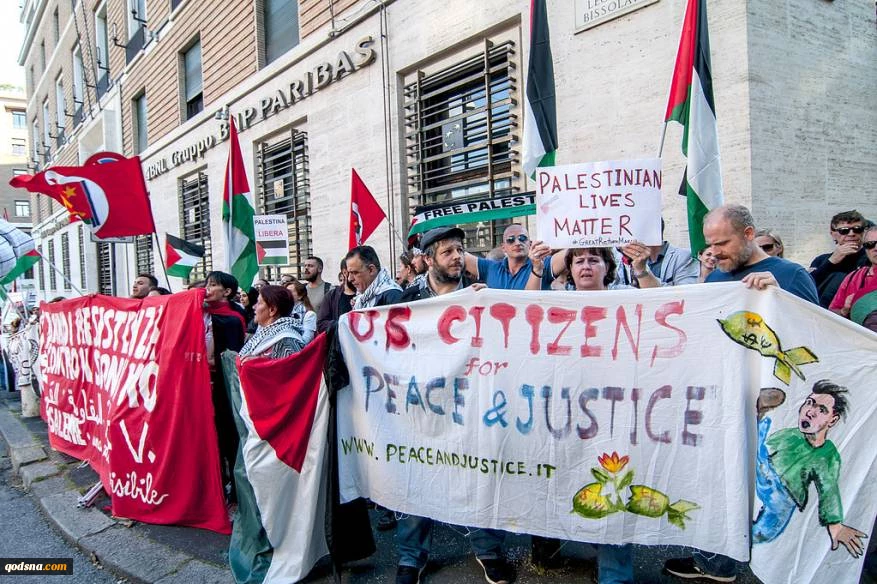 تجمع حمایت از ملت فلسطین در مقابل سفارت آمریکا در رم