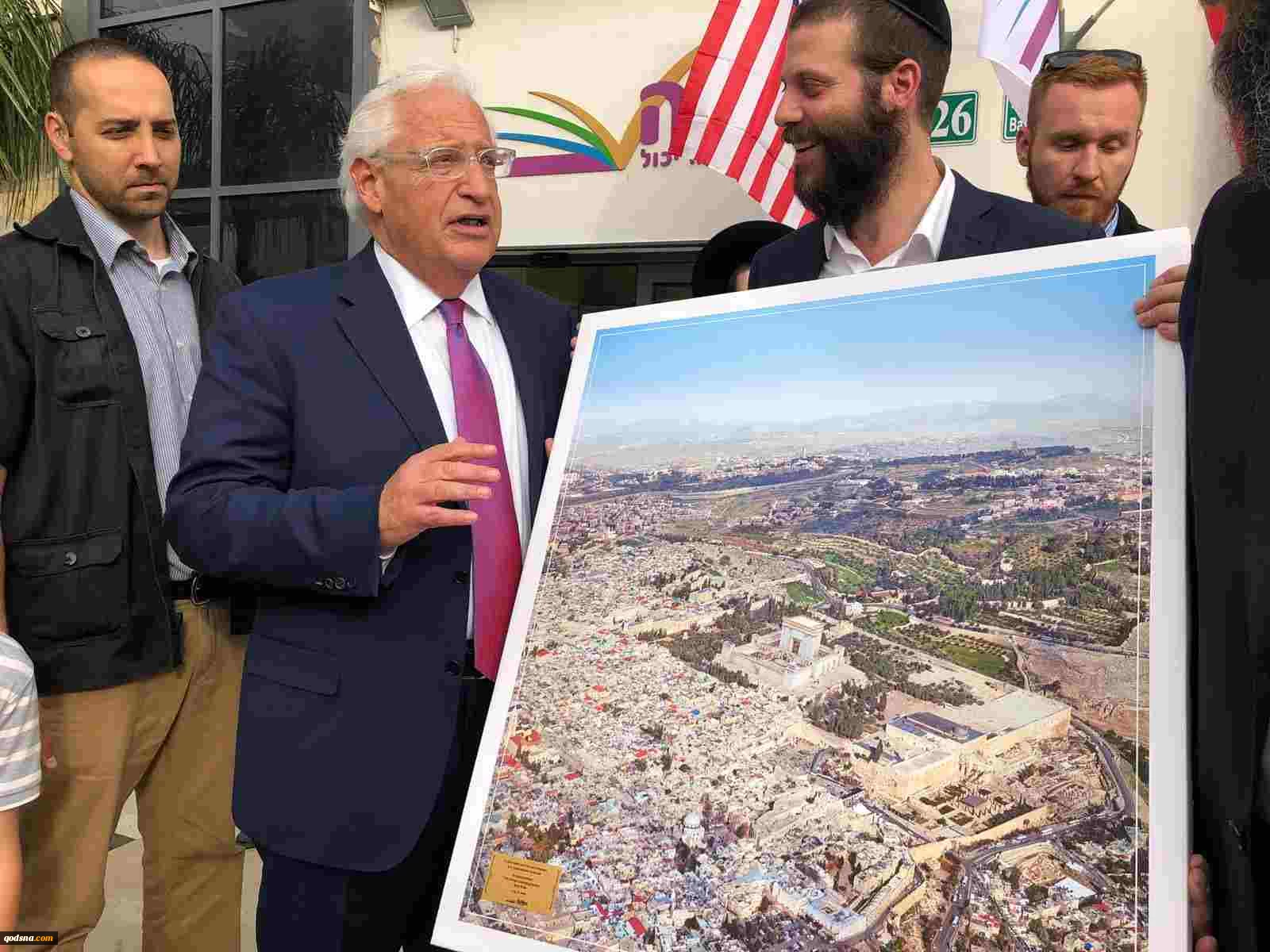 دیوید فریدمن سفیر آمریکا در اراضی اشغالی به مناسبت سالگرد انتقال سفارت آمریکا از تل آویو به قدس اشغالی بر ساخت هیکل ادعایی یهودیان در بخش قدیمی شهر قدس تاکید کرد.