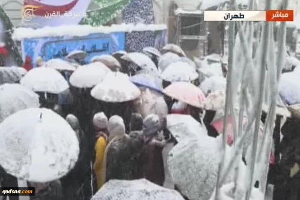 وفا سرایا مجری المیادین در استودیو تهران به تصاویر مردم حاضر در راهپیمایی تهران و رشت اشاره کرد که زیر بارش تقریبا شدید برف در خیابان حاضر شدهاند و گفت، همین حضور با این وضعیت، نشان دهنده دروغ کسانی است که میگویند، مردم ایران را بالاجبار به این مراسمها میآورند.