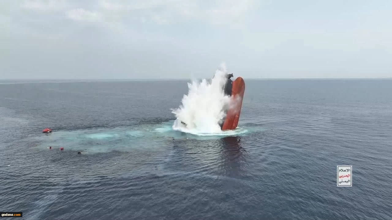 "ستاد تبلیغات نظامی نیروهای مسلح یمن تصاویری از هدف قرار دادن و غرق کردن کشتی (ETERNITY C) را که عازم بندر ام الرشراش در فلسطین اشغالی بود، منتشر کرد 2
