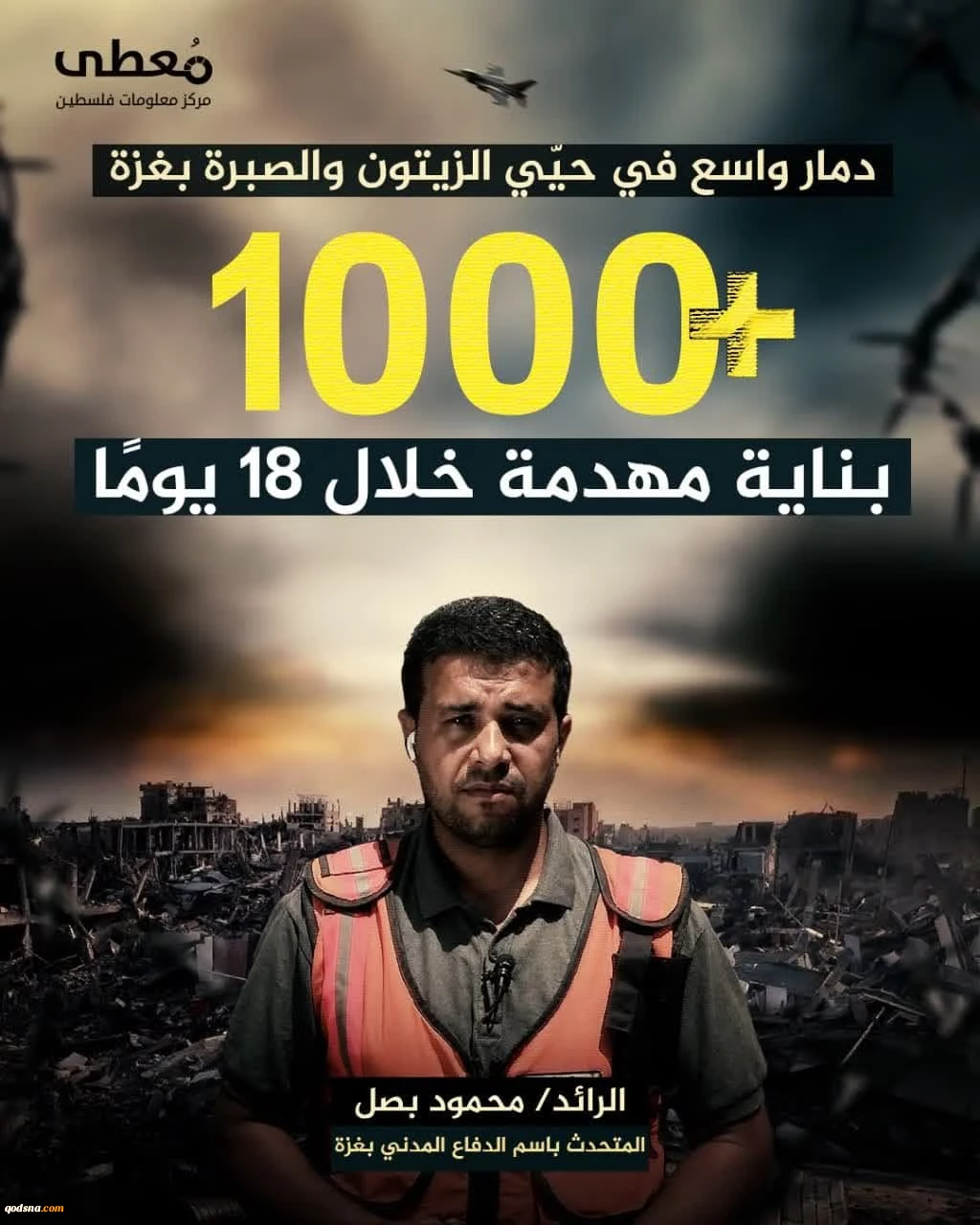 تخریب بیش از 1000 واحد مسکونی در مناطق الزیتون و الصبره در شهر غزه طی 18 روز اخیر 2
