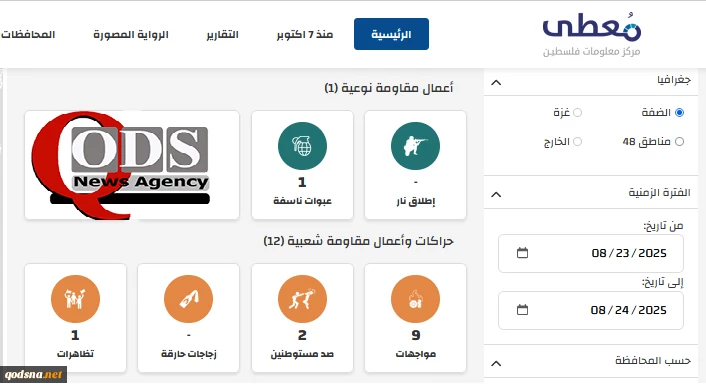 مرکز پژوهشی معطی منتشر کرد؛ 13 عملیات مقاومتی در کرانه باختری در 24 ساعت اخیر+ نمودار 2