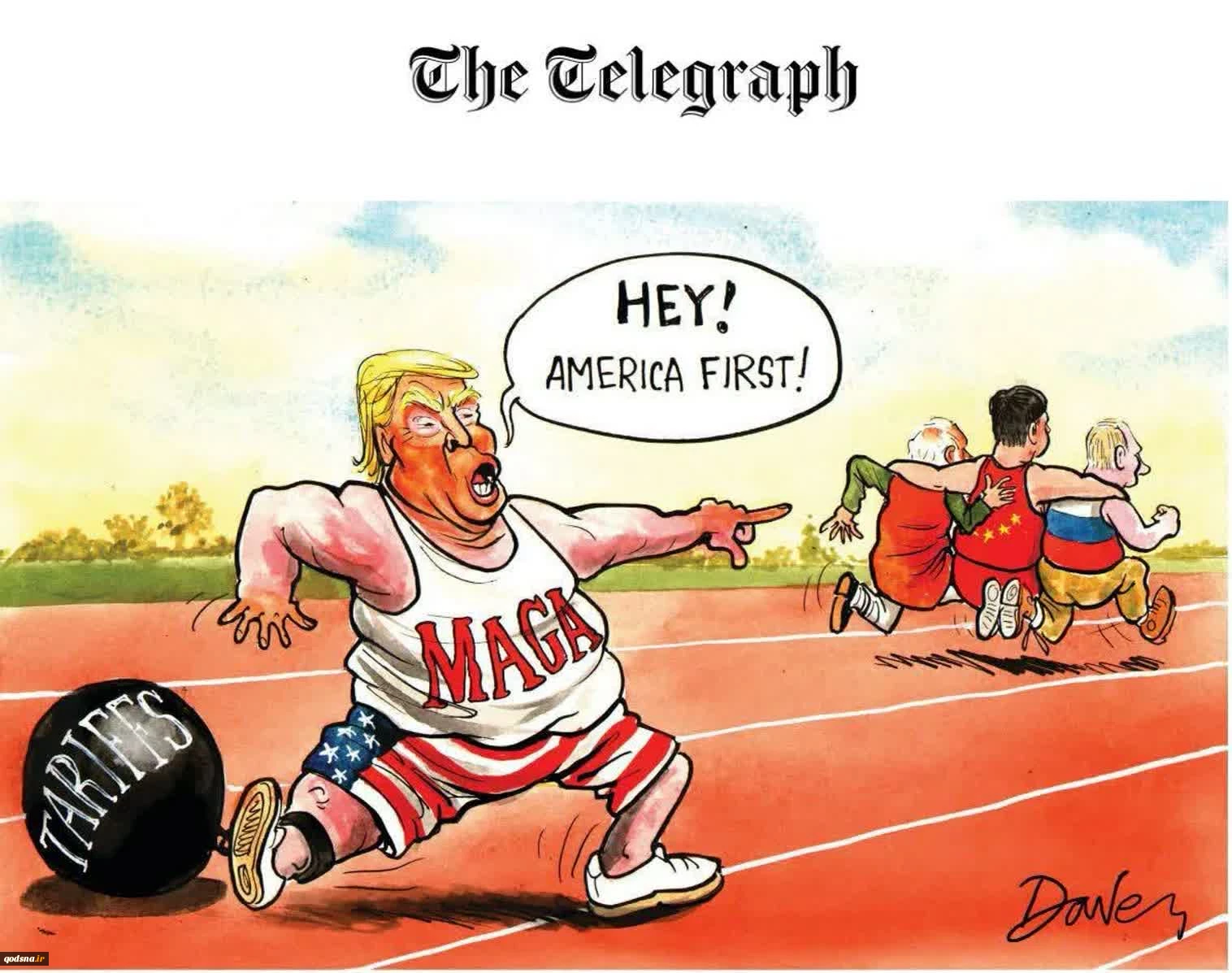 کاریکاتور روزنامه تلگراف از درماندگی ترامپ در برابر اتحاد هند و روسیه و چین 2