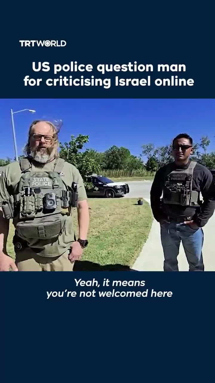 یک شهروند آمریکایی در ایالت تگزاس ویدیویی منتشر کرده که لحظه بازجویی پلیس از او بهدلیل انتشار دیدگاههای انتقادی علیه رژیم صهیونیستی را نشان میدهد. در این ویدیو، مأموران پلیس خطاب به او میگویند: «ما به خاطر نظراتی که درباره جامعه یهودیان در فضای مجازی بیان کردهاید، برای بازجویی از شما آمدهایم.»