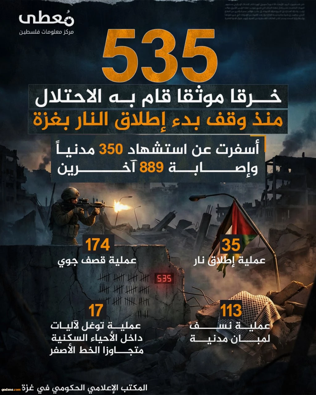 مرکز آماری پژوهشی معطی گزارش داد؛ 535 مورد نقض آتش بس در غزه از سوی رژیم صهیونیستی+ عکس 3