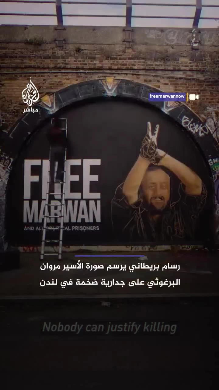 یک هنرمند انگلیسی تصویر رهبر اسیر فلسطینی «مروان برغوثی» را ـ که بیش از ۲۳ سال در زندانهای رژیم صهیونیستی محبوس است ـ بر دیوارنگارهای بزرگ در لندن ترسیم کرد.