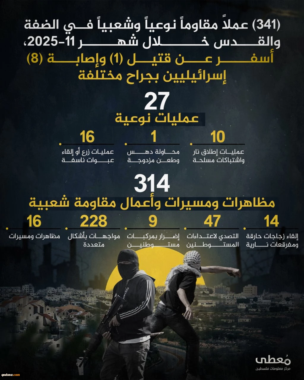 امتیاز دهید : مرکز پژوهشی آماری معطی گزارش داد؛ 341 عملیات مقاومتی در کرانه باختری طی ماه نوامبر/ ثبت میانگین قریب به 12 عملیات در هر روز +نمودار 3 چهارشنبه 12 آذر 1404 ساعت 11:36