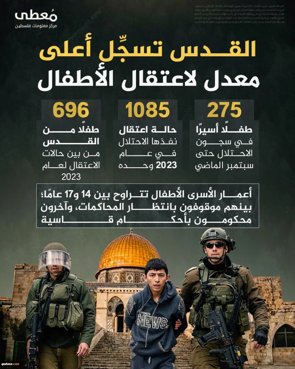 مرکز پژوهشی معطی منتشر کرد؛ ثبت بالاترین میانگین بازداشت کودکان در جهان در قدس اشغالی+ نمودار 2