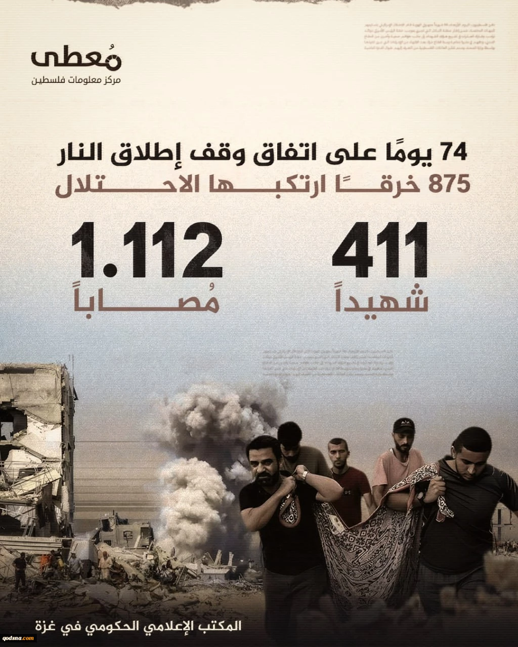 امتیاز دهید : مرکز آماری پژوهشی معطی گزارش داد؛ ۷۴ روز پس از آتشبس در غزه؛ 875 مورد نقض توافق و 411 شهید فلسطینی 3 چهارشنبه 3 دی 1404 ساعت 10:38
