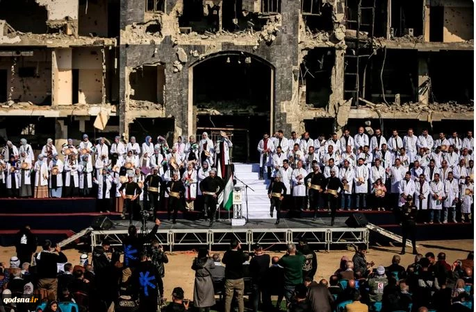 امتیاز دهید : غزه همچنان سربلند و استوار/ مراسم فارغ التحصیلی 168 دانشجوی پزشکی بر روی ویرانههای بیمارستان الشفاء/ کادر درمان 1700 شهید تقدیم کرده است 2 جمعه 5 دی 1404 ساعت 12:22