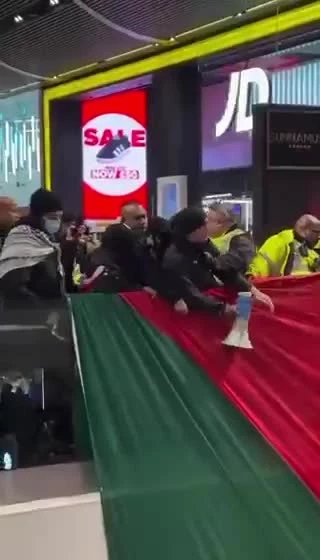 پایگاه فلسطینی الجرمق در کانال تلگرام خود تصویری از تجمع در مرکز خرید وستفیلد استراتفورد لندن در اعتراض به نسل کشی در غزه و به منظور درخواست آزادی اعضای بازداشت شده فلسطین اکشن منتشر کرد.