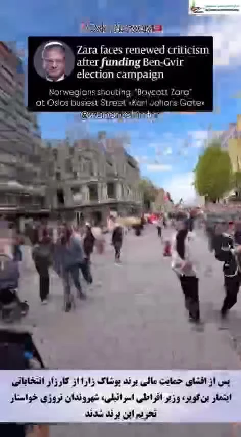 امتیاز دهید : پس از افشای حمایت مالی برند پوشاک زارا از کارزار انتخاباتی ایتمار بنگویر، وزیر افراطی اسرائیلی، شهروندان نروژی خواستار تحریم این برند شدند /> سهشنبه 21 بهمن 1404 ساعت 8:17