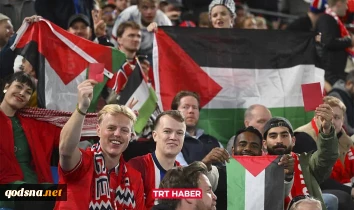 تصاویری از همبستگی با فلسطین در جریان بازی تیم ملی فوتبال نروژ با رژیم صهیونیستی در چارچوب بازی‌های مقدماتی جام جهانی ۲۰۲۶